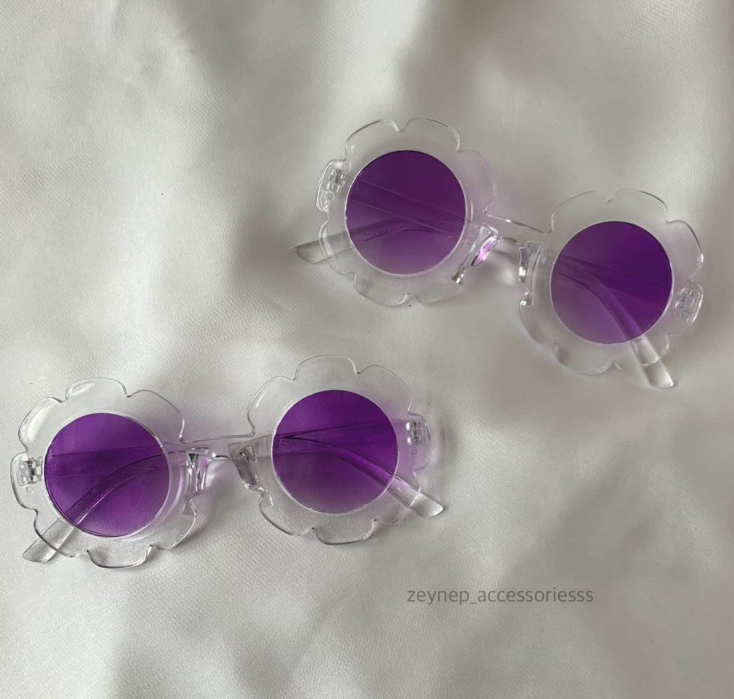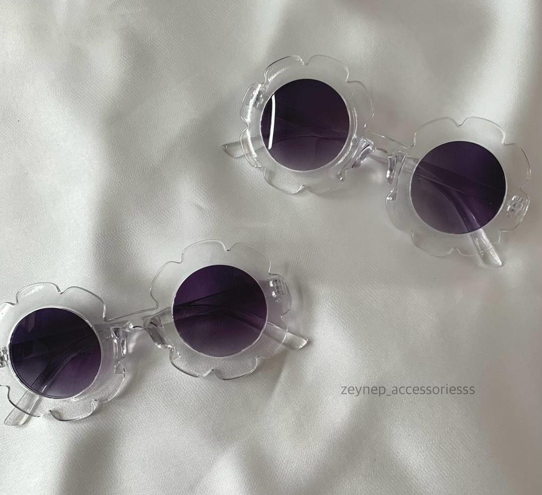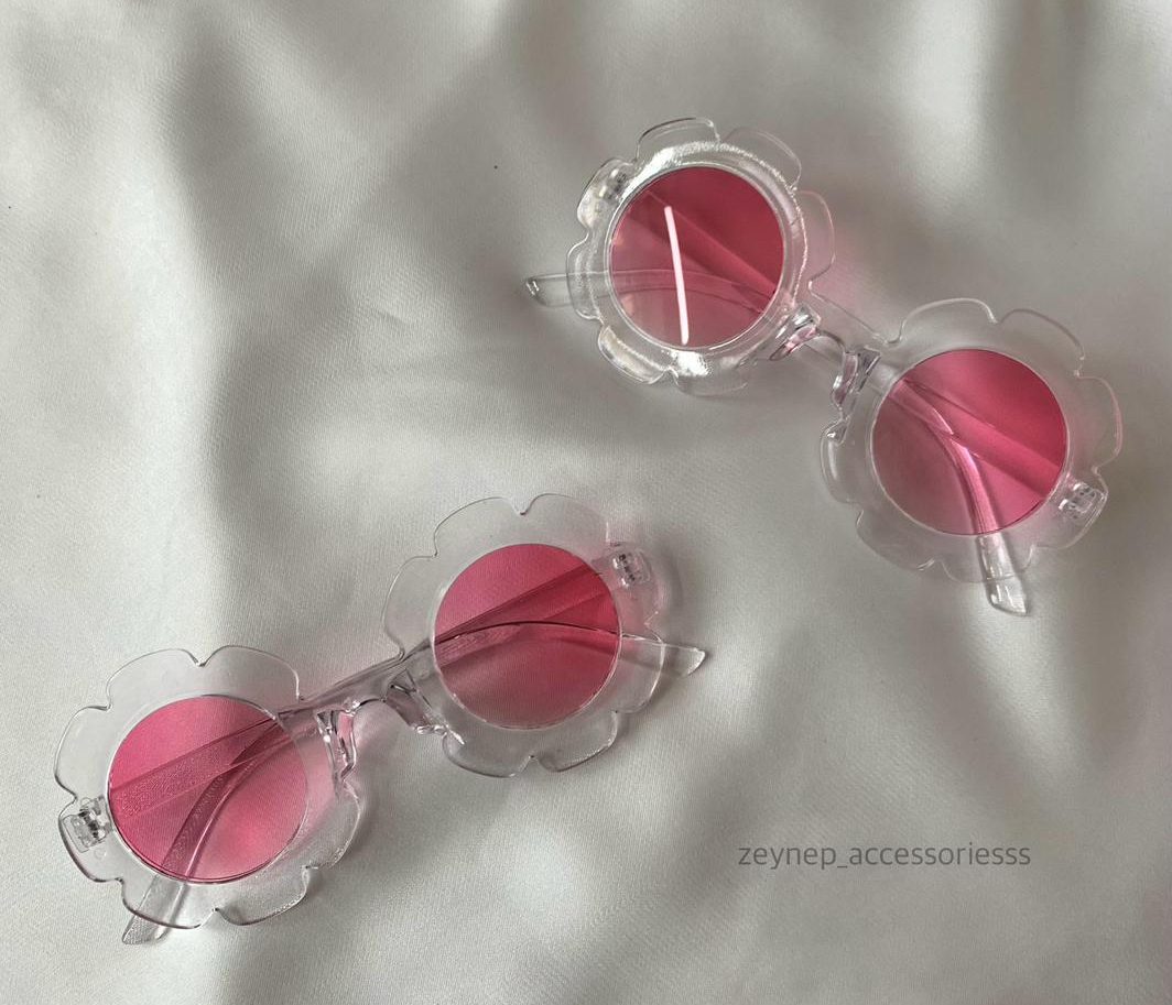 Adorable flower-shaped sunglasses featuring a clear transparent frame with soft pink tinted lenses. Designed in a playful floral silhouette, these lightweight shades are perfect for adding a cute, trendy touch to any outfit. Ideal for photoshoots, parties, and fun everyday styling.