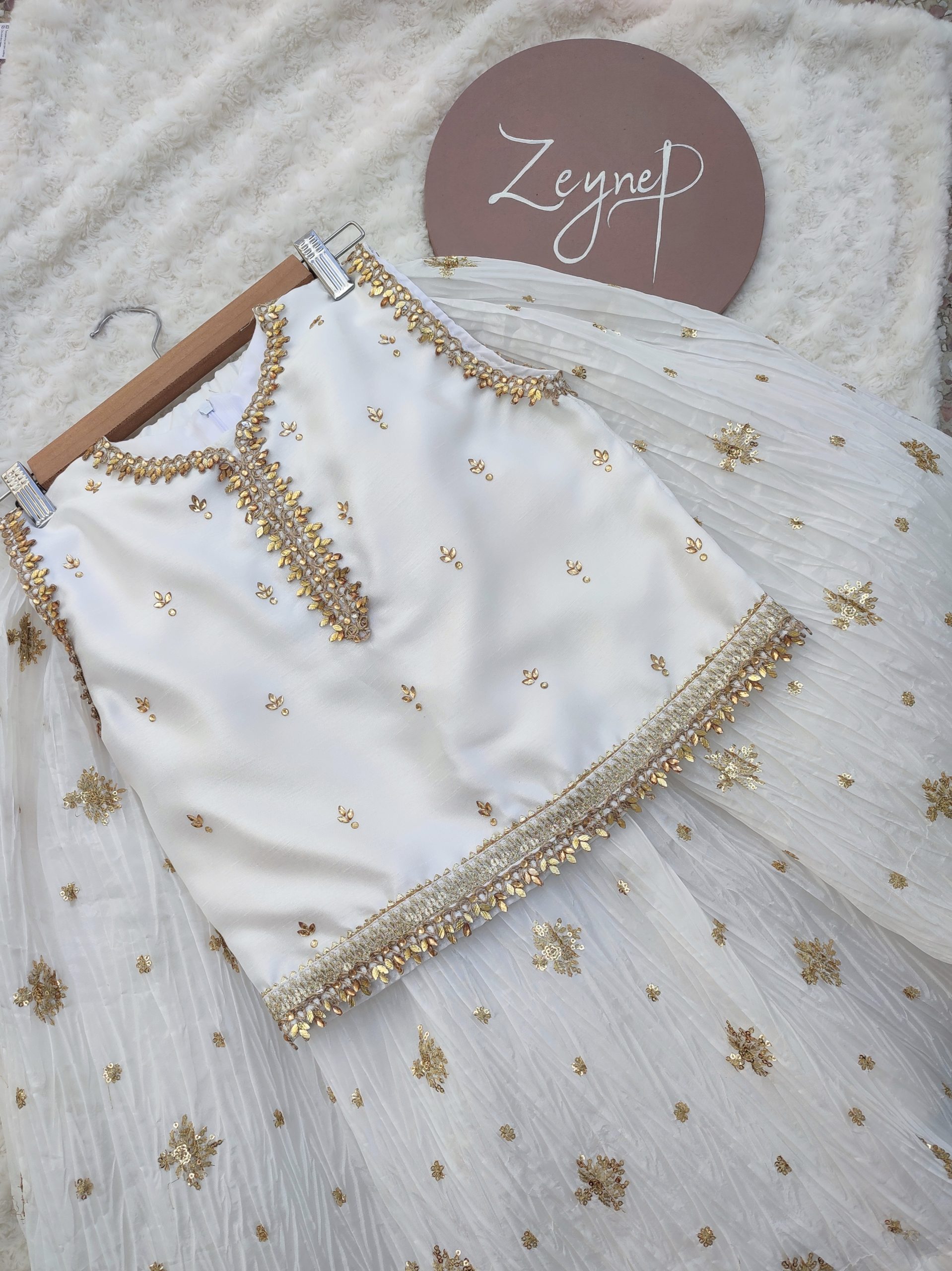Available in a variety of colours, this outfit offers versatility for different moods and celebrations. Perfect for festive evenings, wedding events, and special occasions, Zareen is designed for those who value timeless beauty and statement simplicity.